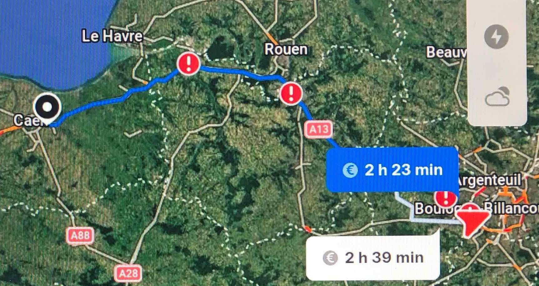 En retard sur la concurrence, le planificateur embarqué ne propose aucune alternative au trajet via la A11 : dommage, nous souhaitons passer par la A13.
