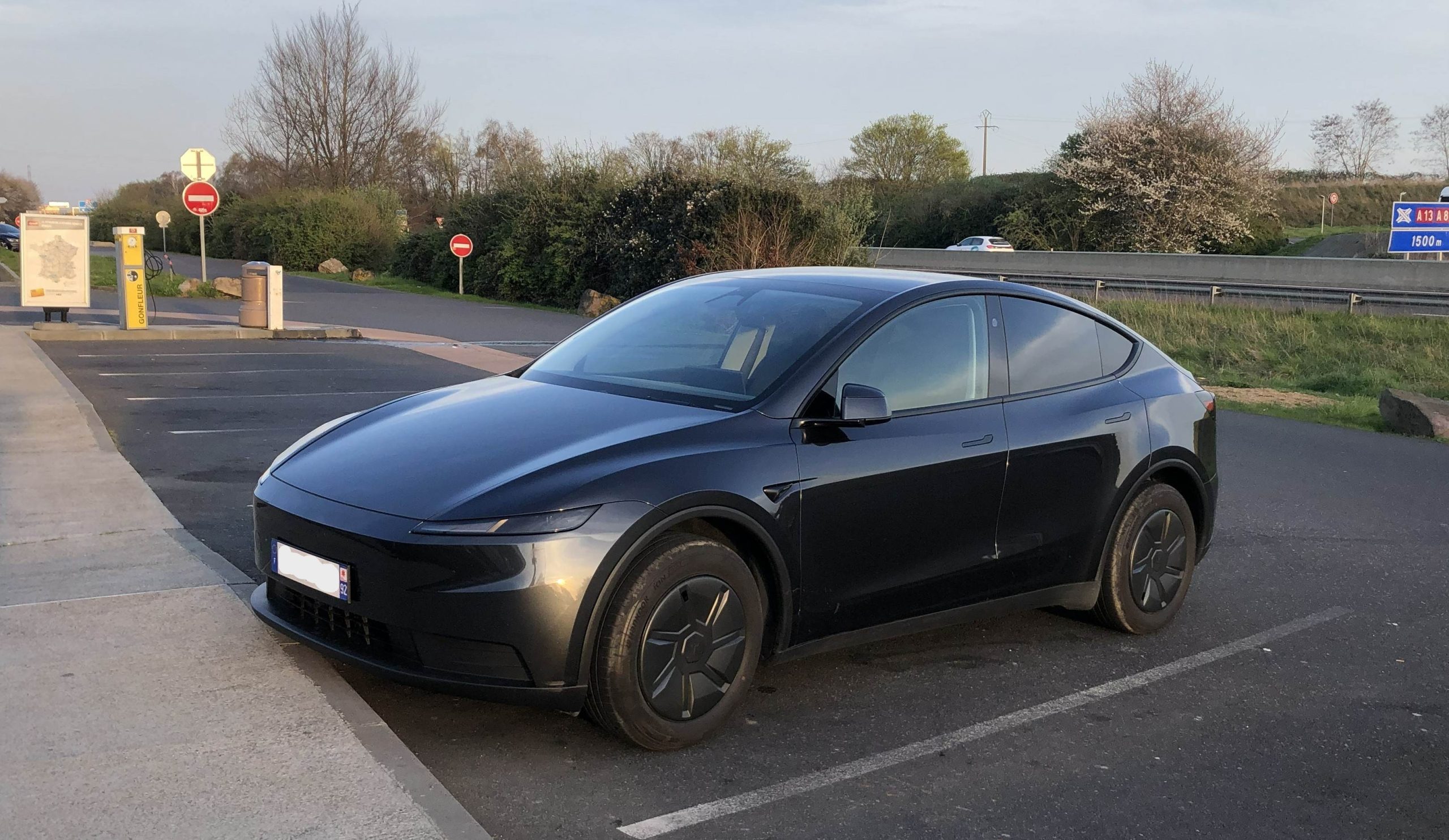 (*) Comme pour beaucoup de voitures, ce Model Y affiche une consommation un peu sous-estimée : 15,5 kWh/100 par la N12 (-6%), et 17,4 via la A13 (-6%).