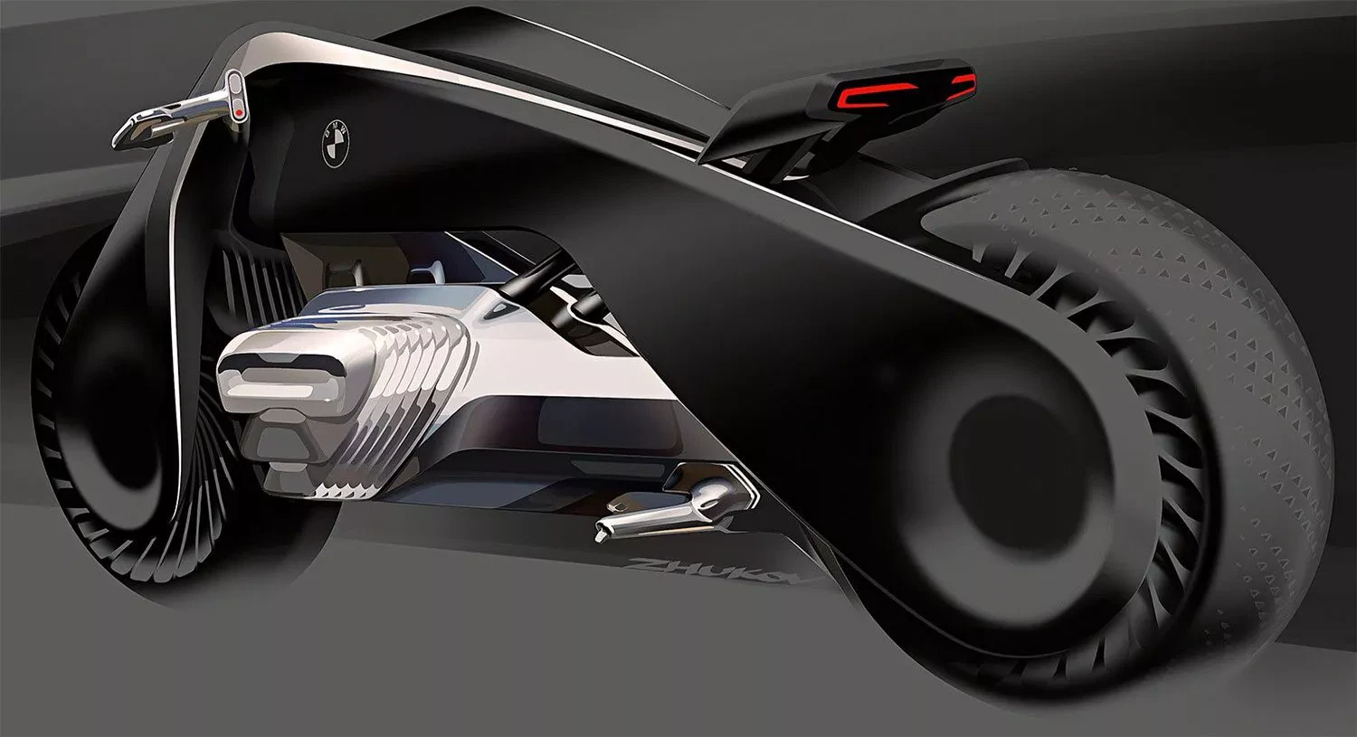 Le design inédit de la Motorrad Vision Next 100 comporte un nouveau cadre flexframe, qui part d’un seul trait de la roue avant à la roue arrière. On constate une certaine souplesse de l’engin qui permet au conducteur d’effectuer les manœuvres de braquages les plus précises sans les articulations traditionnelles des autres motos sur le marché actuellement. En pratique, lorsque le pilote braque le guidon, le cadre change de forme et l’engin prend une autre direction. En outre, l’arrêt est facilité, mais à une grande vitesse le cadre affiche une rigidité très élevée.