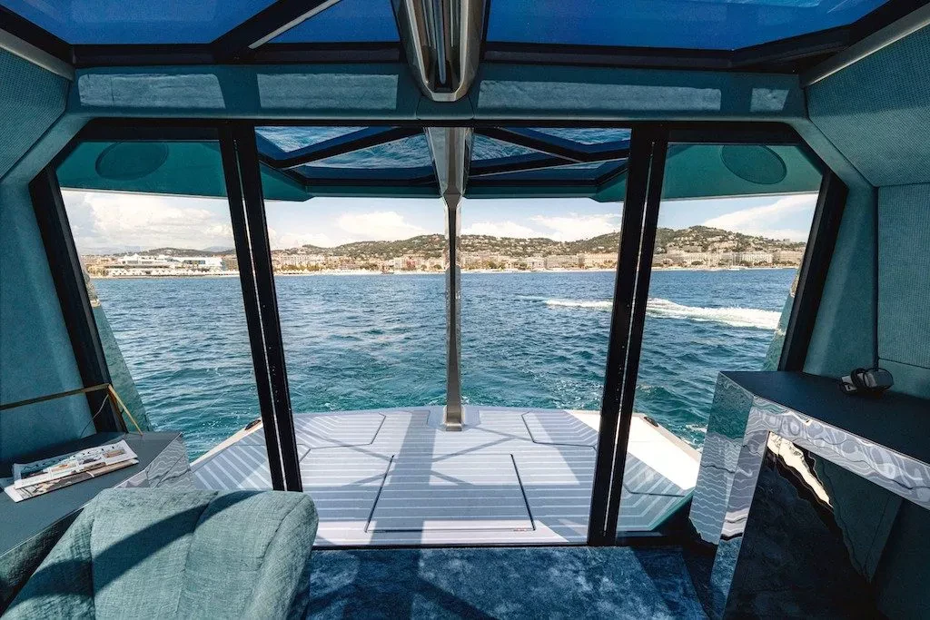 Le poste de commande de l’embarcation est situé au centre du pont et est instrumenté avec le design BMW. La machine se présente sous la forme d’un écran tactile de 32 pouces associé au système d’exploitation BMW 8.