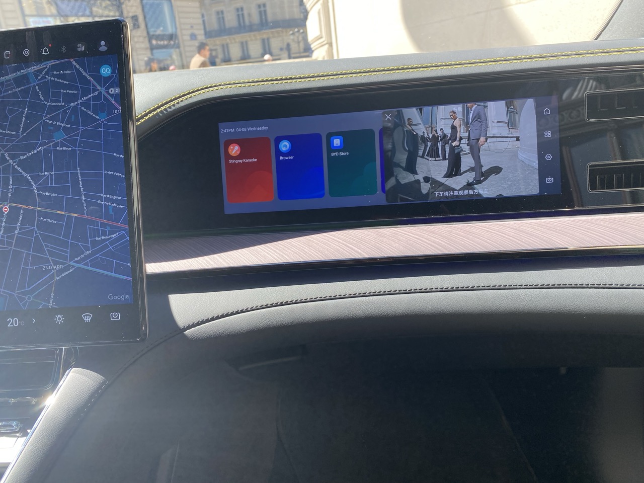 Denza frappe fort avec un cockpit ultra-technologique. On y trouve un écran central flottant de 17,3 pouces — plus grand que celui d’une Tesla — ainsi qu’un écran de 13,2 pouces pour le passager, rappelant l’agencement des modèles Audi ou Porsche. Le conducteur dispose également d’un affichage tête haute en réalité augmentée de 50 pouces et de rétroviseurs caméras haute définition. Côté audio, le système Devialet de 20 haut-parleurs avec Dolby Atmos promet une expérience immersive digne d’un opéra. Sur la route, la plateforme promet des prouesses dynamiques grâce à trois moteurs et des roues arrière directrices indépendantes, autorisant même une fonction « marche en crabe » pour faciliter les manœuvres.