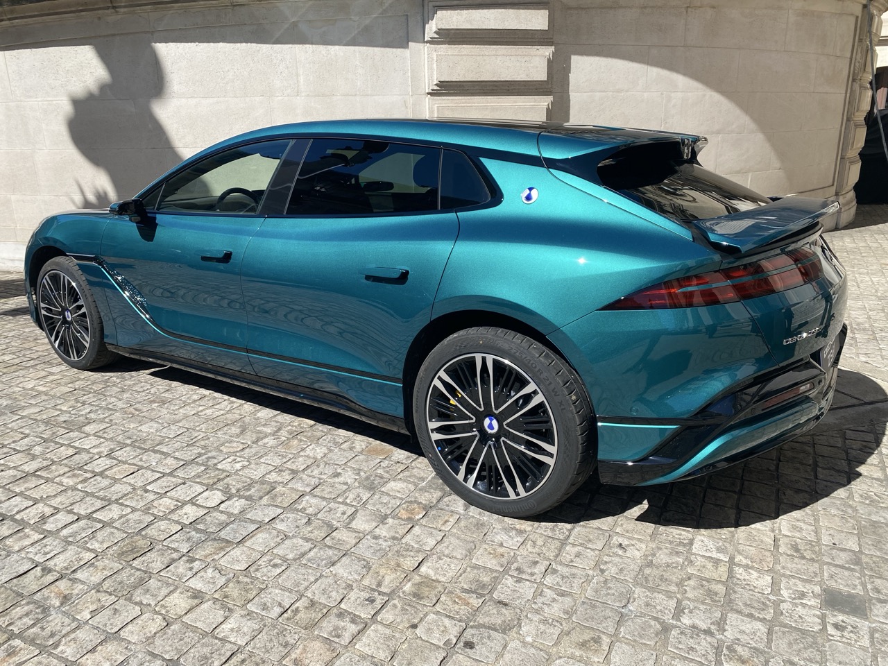 La Denza Z9GT se présente sous la forme d’un élégant shooting brake d’une longueur imposante de 5,18 mètres. Son profil est des plus agréables, on la remarque de suite. La batterie est intégrée au châssis, aussi la voiture offre un plancher plat et une rigidité annoncée comme exceptionnelle. Le volume de coffre est de 495 litres pour la version 100 % électrique.