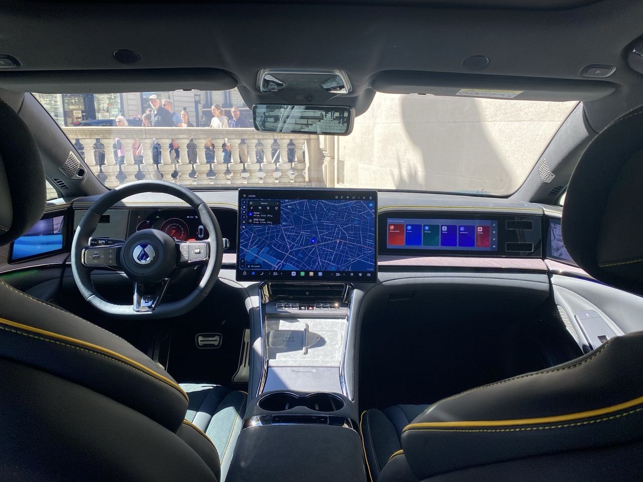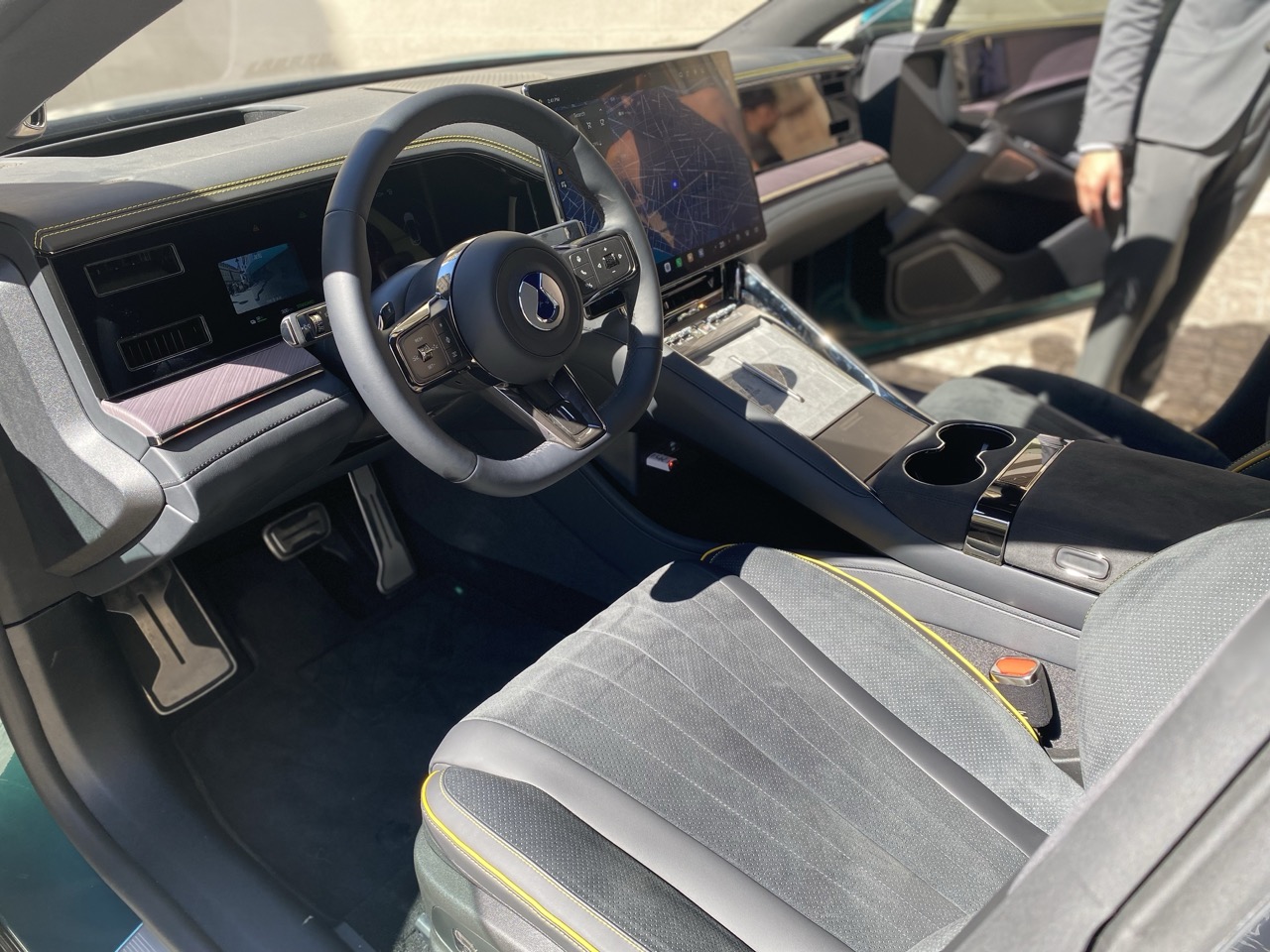 L’habitacle se veut celui d’une limousine de luxe. Les premières observations soulignent une finition haut de gamme avec des portes à ouverture automatique via un bouton. Les sièges avant proposent des réglages électriques en 8 directions, des massages en 10 points et, première mondiale, des traversins latéraux actifs pour un meilleur maintien en virage. À l’arrière, les passagers bénéficient de sièges chauffants, ventilés, massants avec repose-jambes étendus. L’ambiance est complétée par un toit panoramique et un compartiment réfrigéré pouvant descendre à -6°C.