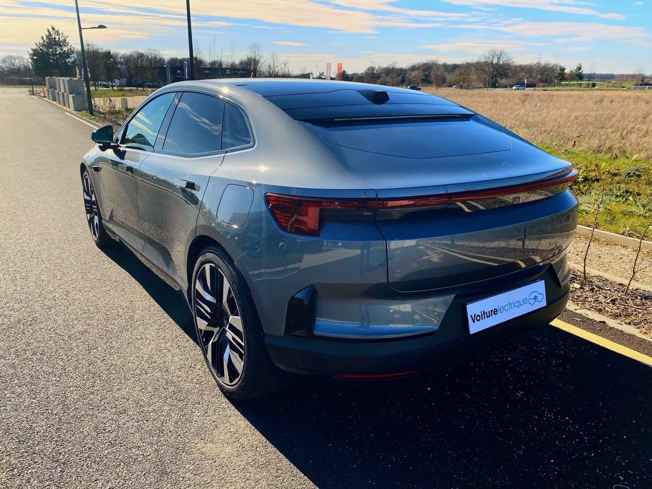 Le design est marqué par un logo Polestar qui s’illumine sur la face avant et, surtout, par l’absence totale de lunette arrière, une première sur un véhicule de série de ce segment. À la place, on trouve un hayon plein et un toit en verre panoramique qui s’étend derrière la tête des passagers arrière.