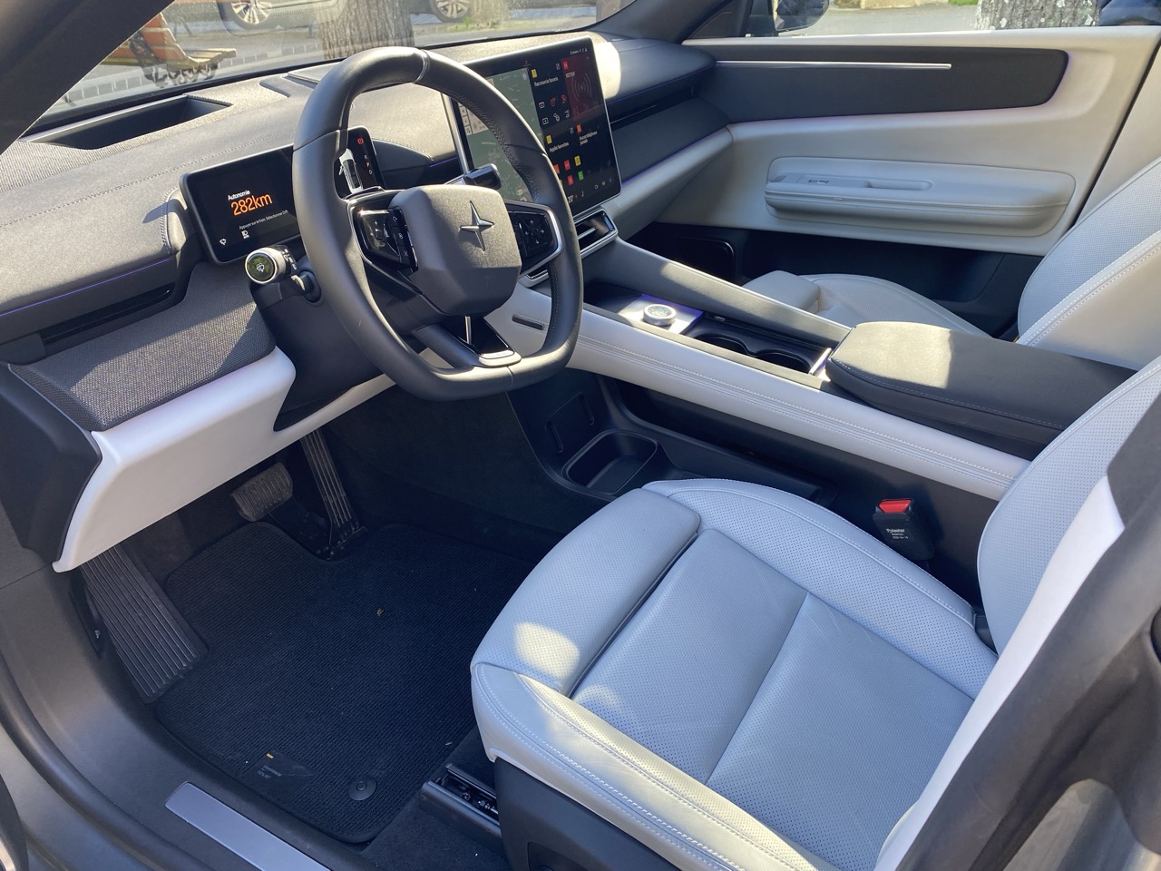 Le système d’infodivertissement repose sur un écran central de 15,4 pouces fonctionnant sous Android Automotive (Google Maps, Assistant et Play Store intégrés). L’ensemble est complété par un écran conducteur de 10,2 pouces et un affichage tête haute. Groupe Volvo oblige, la sécurité n’est pas en reste avec une suite ADAS comprenant 11 caméras, 1 radar et 12 capteurs ultrasons. Enfin, du point de vue de la plannification, c’est Google qui opère comme dans les Volvo ou les Renault. Rien à redire, si ce n’est que l’on ne peut pas filtrer par réseau de recharge.