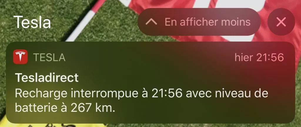 En arrivant, on déchante bien vite, les 3 bornes (2 Tesla et une VE) sont cachées au fond du tout petit parking derrières les pots de fleurs et les autres clients (voitures thermiques) ne nous laissent qu’une toute petite place, difficile d’y parvenir après de périlleuses manoeuvres. Les prises Tesla trainent dans les pots de fleurs et sont pleines de terre, les pauvres bornes sont pleines de fiantes de mouettes, c’est vrai, nous sommes au bord de la mer. Bon ça charge à 7kW, ce serait idéal si nous pouvions recharger toute la nuit. A 21:58, malgré notre remarque, le jus est coupé et sera remis à 6:45. J’ai un doute sur la remise en marche de la recharge sur la Model 3 sans intervention de ma part. A 8:30, le lendemain matin, l’application Tesla indique que la voiture ne charge pas, normal, le courant n’a pas été remis. Il faut descendre à la réception pour le signaler, débrancher puis rebrancher pour relancer la charge. Au final, nous repartons contrarié avec 75% de batterie, ce n’est pas la philosophie du service proposé par Tesla, surtout lorsque ce « service » est facturé.