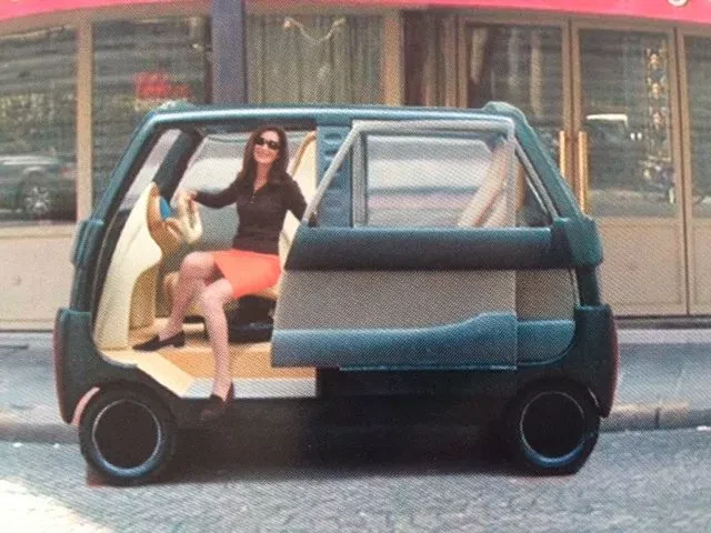 Comprendre, un mini bus 2 places + conducteur, ultra court, ultra étroit, avec des portes coulissantes pour se garer près d’un mur : Ce n’est