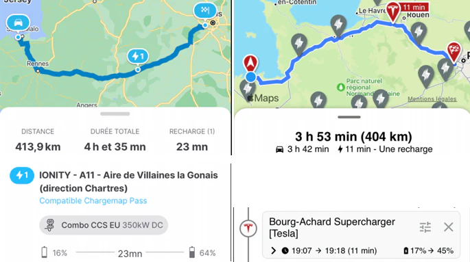 - Malgré un trajet plus long et plus cher, Chargemap est le seul à privilégier la A11