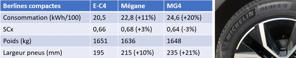 Leur SCx comme leur poids étant très proches, cela ne peut donc s’expliquer que par les chaînes de traction (moteur + pneus).