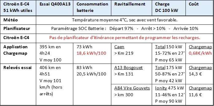 Avec une pointe relevée à 102 kW sur la borne, la puissance de recharge de la Citroën ë-C4 baisse moins vite que certaines rivales affichant une puissance supérieure. Ayant programmé les arrêts via le GPS embarqué, le préchauffage a dû contribuer à ces performances.